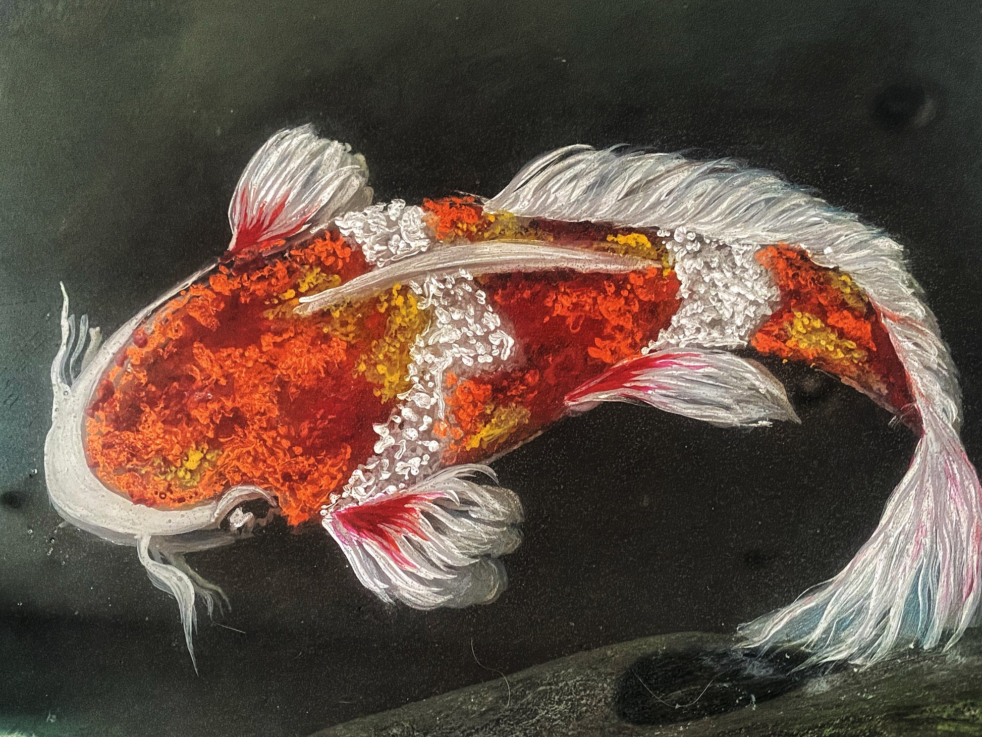 "Solitude" not only captures the beauty of nature but also reflects the Japanese significance embodied by koi fish, reminding us that like these resilient creatures, artists too must navigate obstacles with courage and perseverance to bring their visions to life.